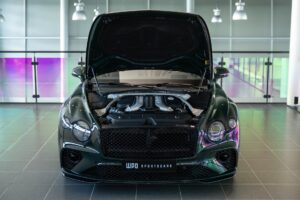 Voor het geluid en de beleving is de auto uitgerust met een Akrapovic sportuitlaat, speciaal in samenwerking met Bentley ontwikkeld en geleverd. Dit zorgt voor een nog intensere rijervaring met een karaktervol, maar stijlvol geluid dat perfect past bij het sportieve karakter van deze uitvoering.