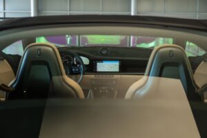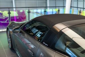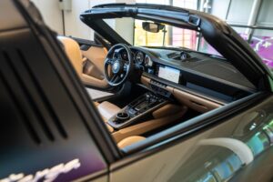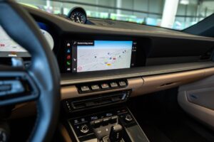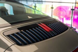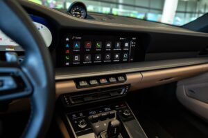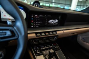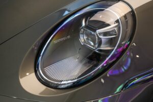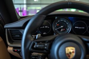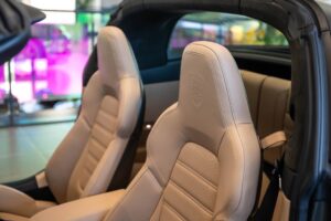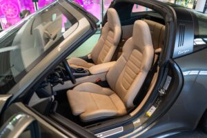 - Porsche wapen in de hoofdsteunen