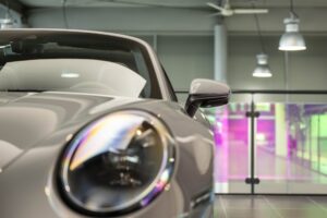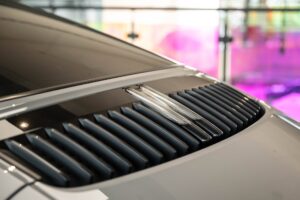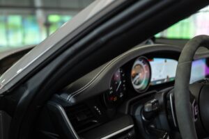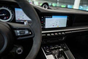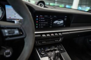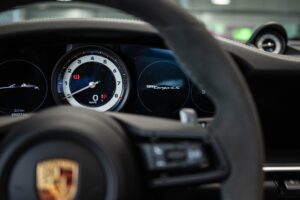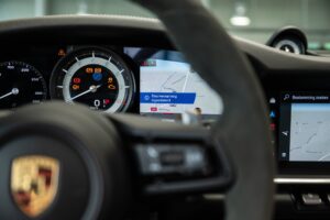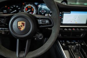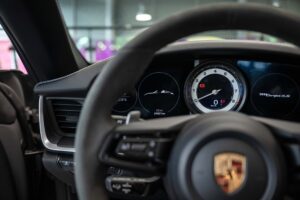 - Porsche wapen in de hoofdsteunen