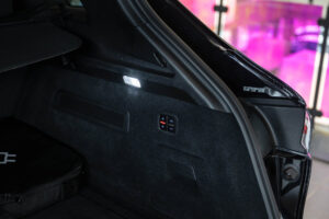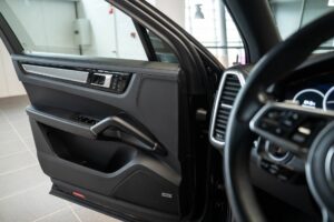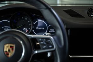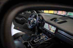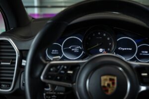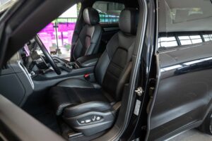 - Porsche wapen in de hoofdsteunen